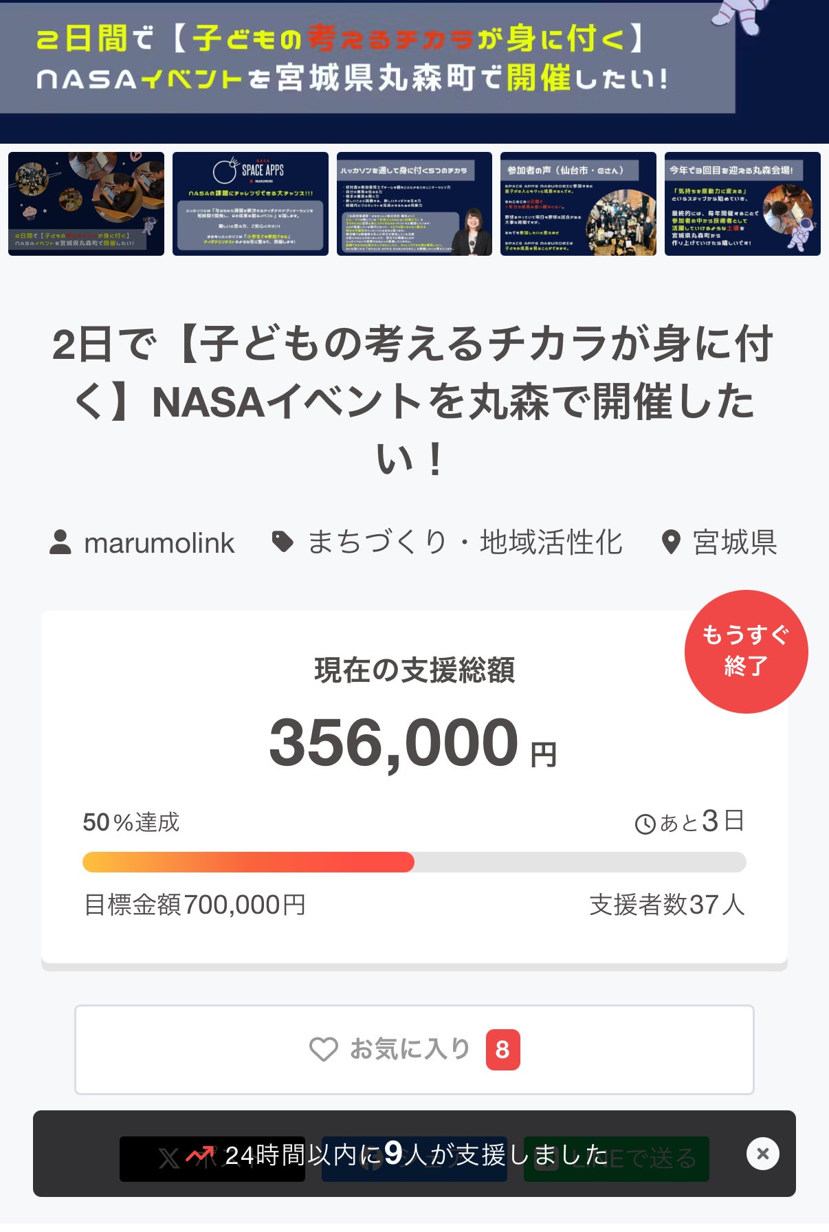 本日50%を達成することができました!ご支援いただいた皆さま、本当に有難うございます( ; ; )