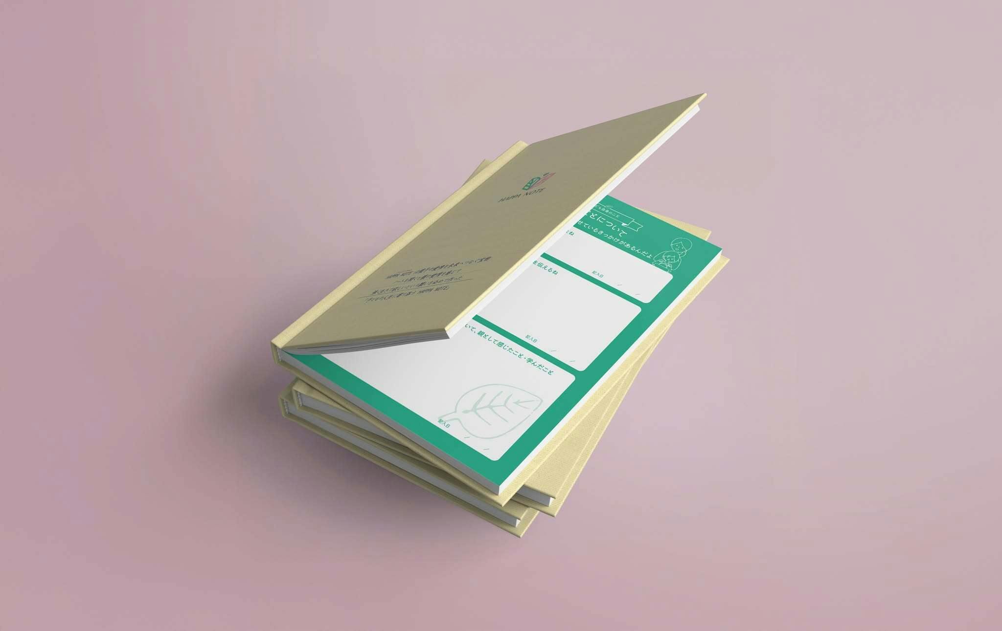 子育て中のエピソードや、自分がここに生まれてきたルーツなど。ノートを開くと、親が自分の背中をポンと押し、優しく人生を応援(ハッパ掛け)し続けてくれると感じてもらえるようなノートになってほしいと考えています。