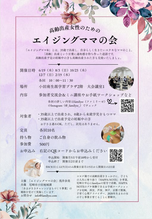 ・エイジングママ®︎(仕事などにより婚期が遅くなった方、不妊治療を経てお子さんを授かられた方など、35歳以上で出産したママ)