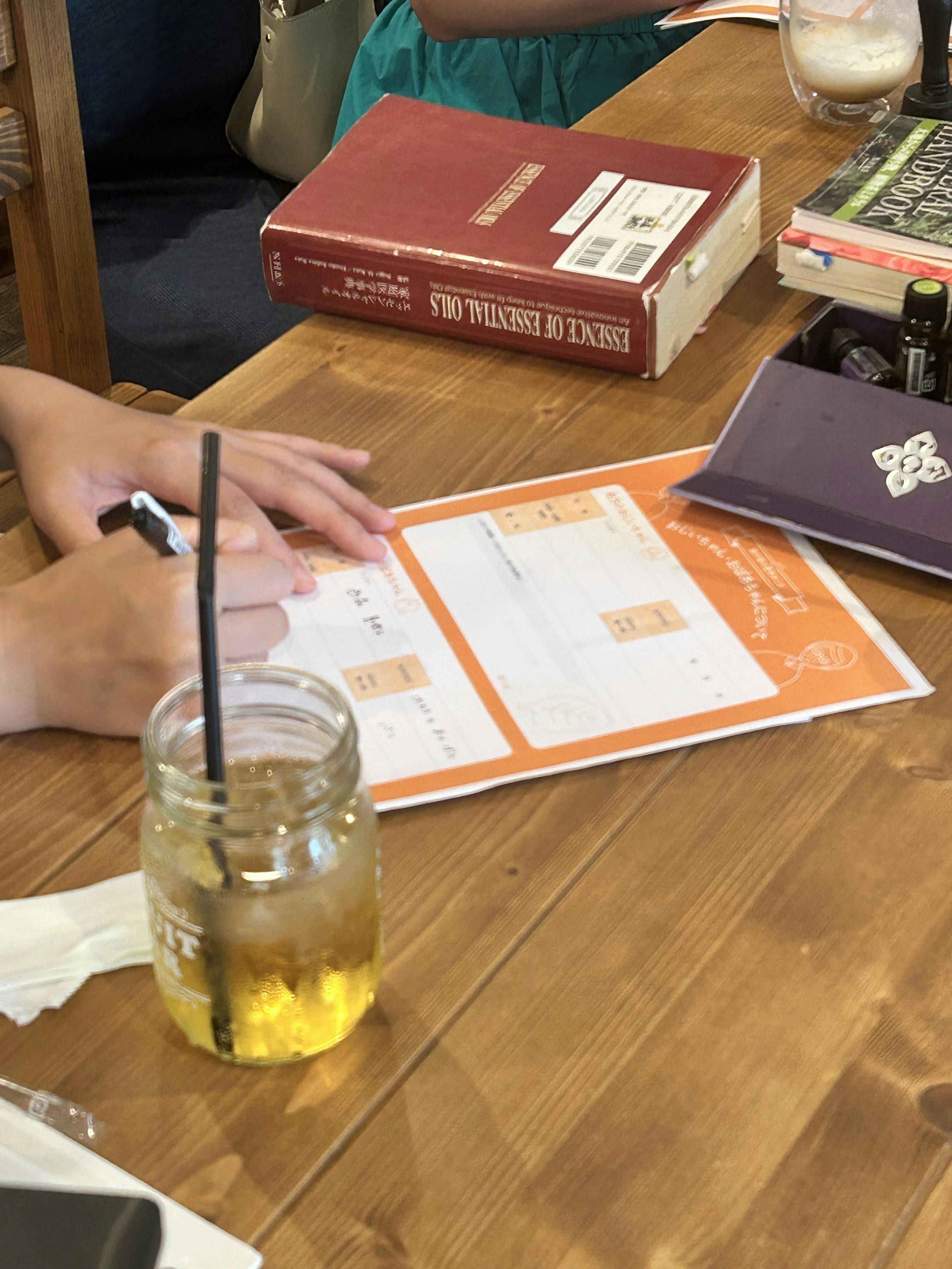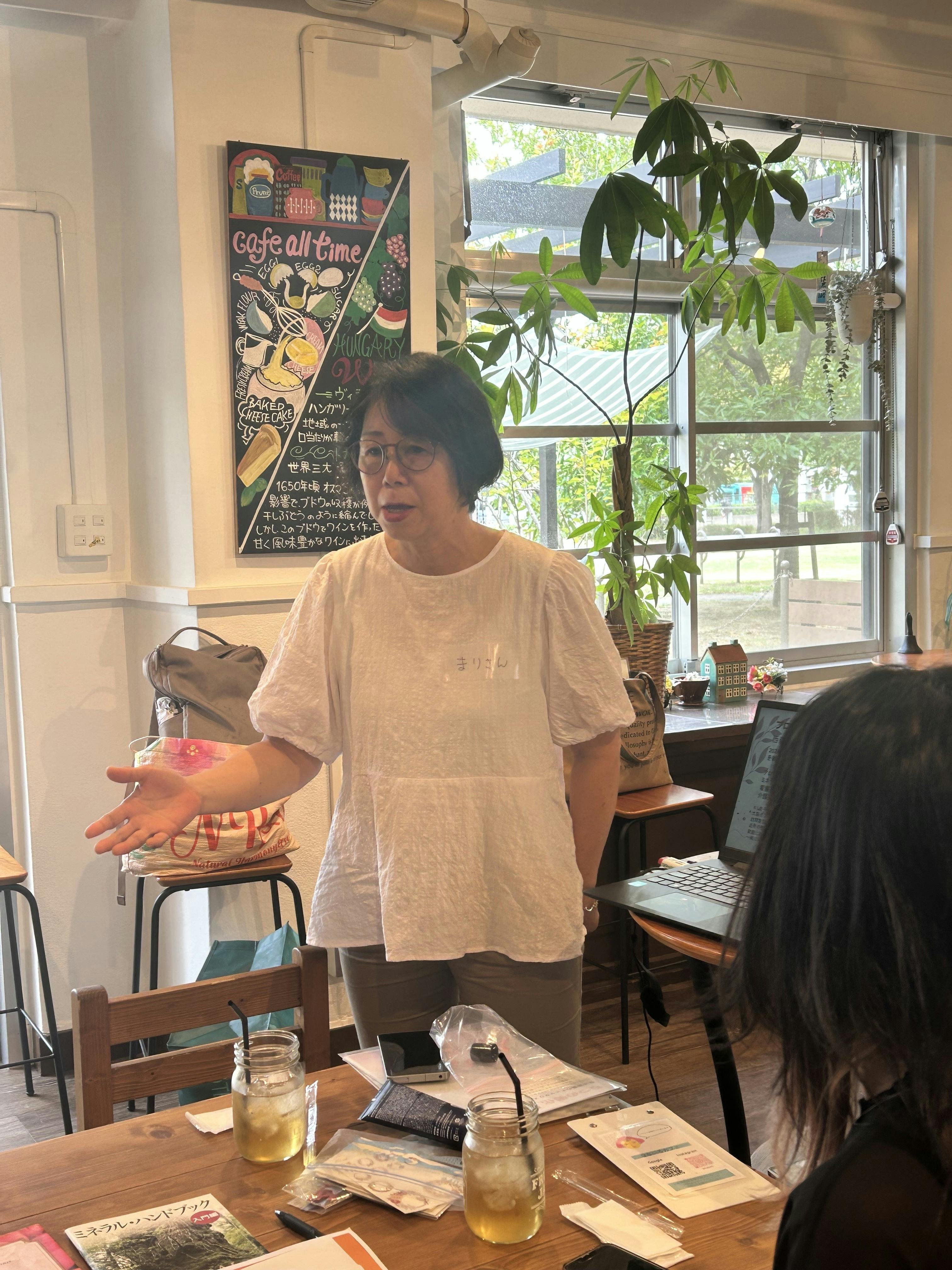 並行して、HAPPA NOTE®をより多くの方に知っていただく活動の一環として「HAPPAランチ会」も開催しています。9月11日には、阪神尼崎の「なないろカフェ」さんで、フェミニンケアのミニ講座とアロマオイル作りのワークショップ、そしてHAPPA NOTE®の体験ワークを行いました。