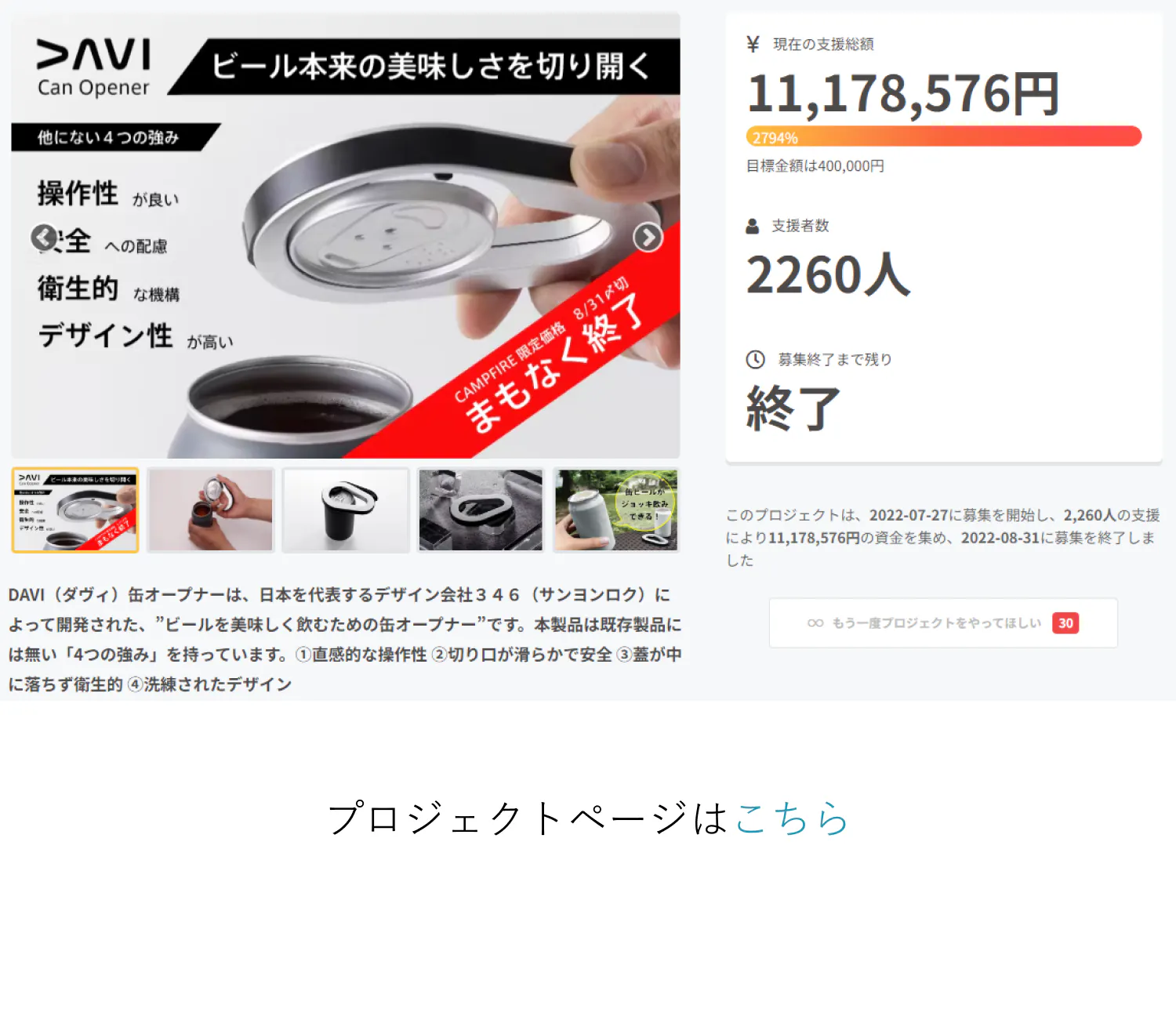 過去のプロジェクトで約3,000万円の支援を集めた「飲料缶をジョッキ飲みできる!DAVI缶オープナー」が再びクラウドファンディングを実施することになりました!