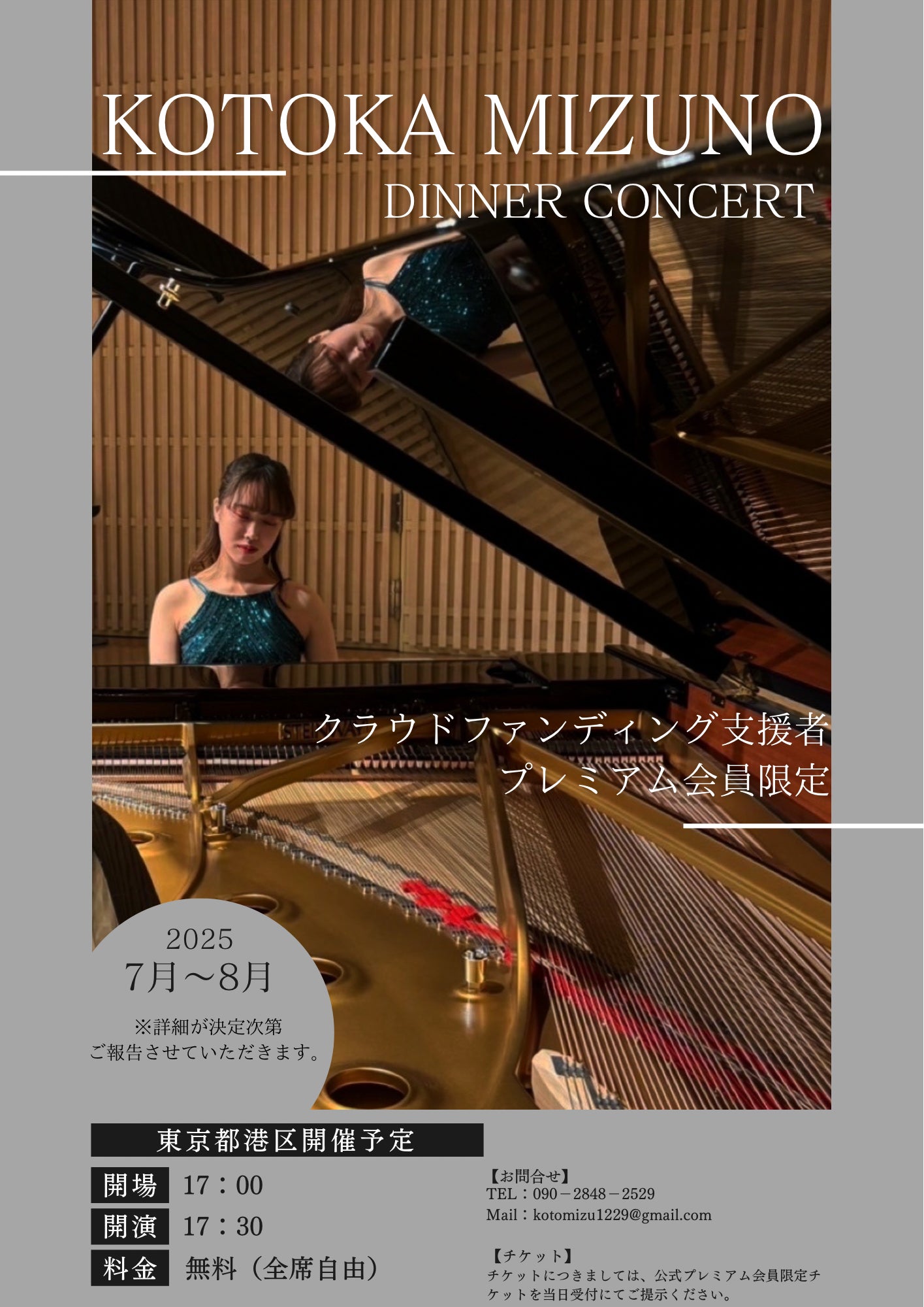 ●クラウドファンディング支援者限定のディナーコンサートにご招待♪