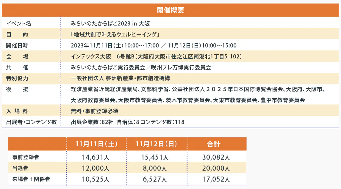 来場予定者数:2万人(関西近辺の4歳~12歳のお子さんとその保護者がメインターゲット)