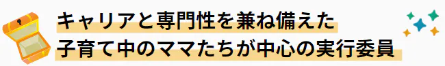 「みらいのたからばこ」プロジェクトの実行委員会のメンバーはキャリアと専門性を兼ね備えた子育て中のママたちが中心となっています。子育てや教育への不安、キャリアとの両立の難しさ、介護への不安、様々な社会課題を経験してきた当事者だからわかる「仕事を通しての自己表現」「地域がつながること」の大切さ。
