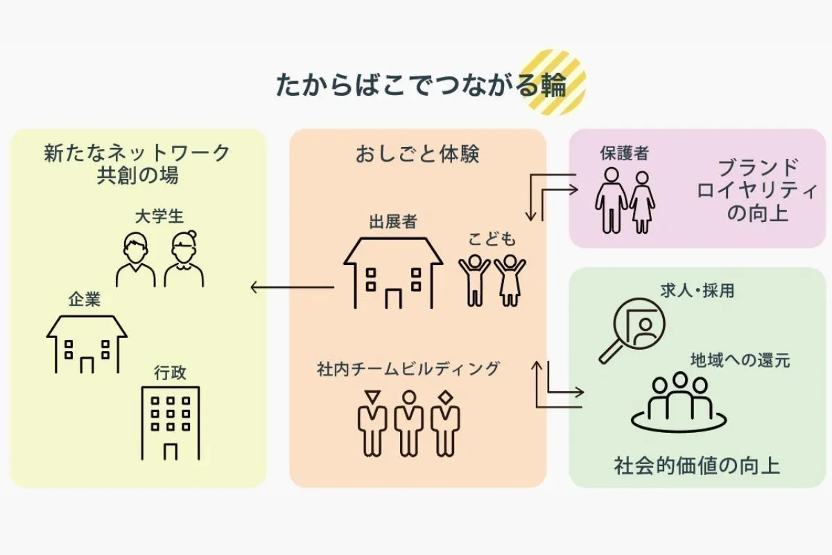 業界・業種も問わず、多くの企業や行政・大学、地域の方々が、こどもの未来、これからの日本に想いを馳せ集まる場所になるからこそ、それぞれの横のつながりがうまれ、新たな価値創造の場にして行きたい、そして同じ想いでつながっている方と地域の社会課題を解決していきたいのです。