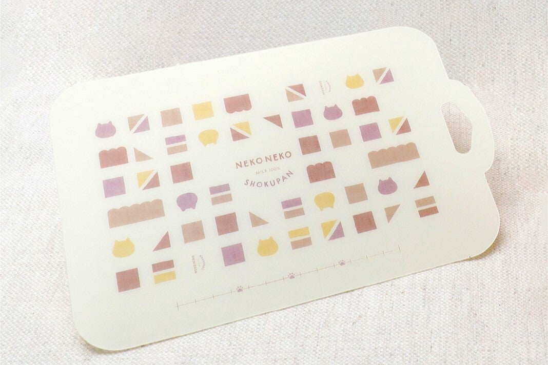 ねこねこ食パンをよりおいしく楽しめる、便利な目盛り付きまな板です。