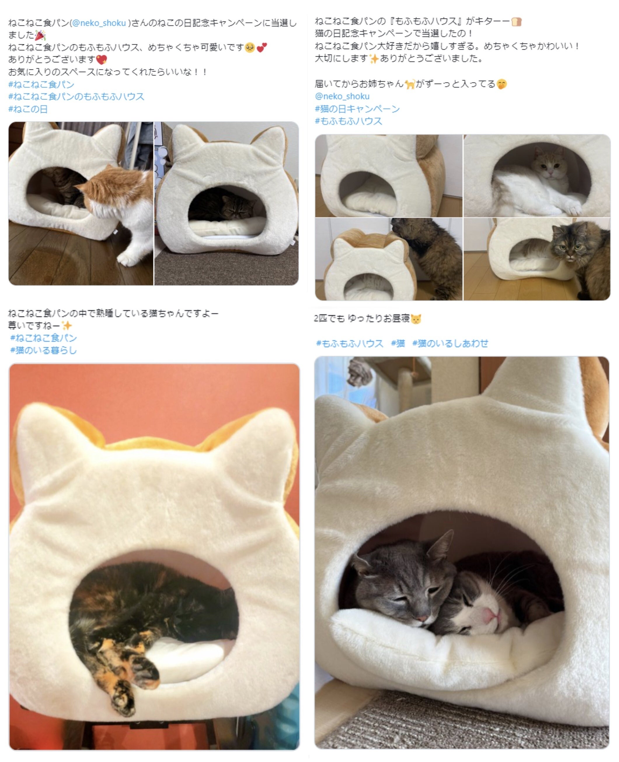 キャンペーンで当選されたフォロワーさんからは、「フカフカでかわいい!」「ねこのお気に入りスポットになりました」「2匹で入っても余裕の広さでうれしい!」などうれしいお声をたくさんいただきました。