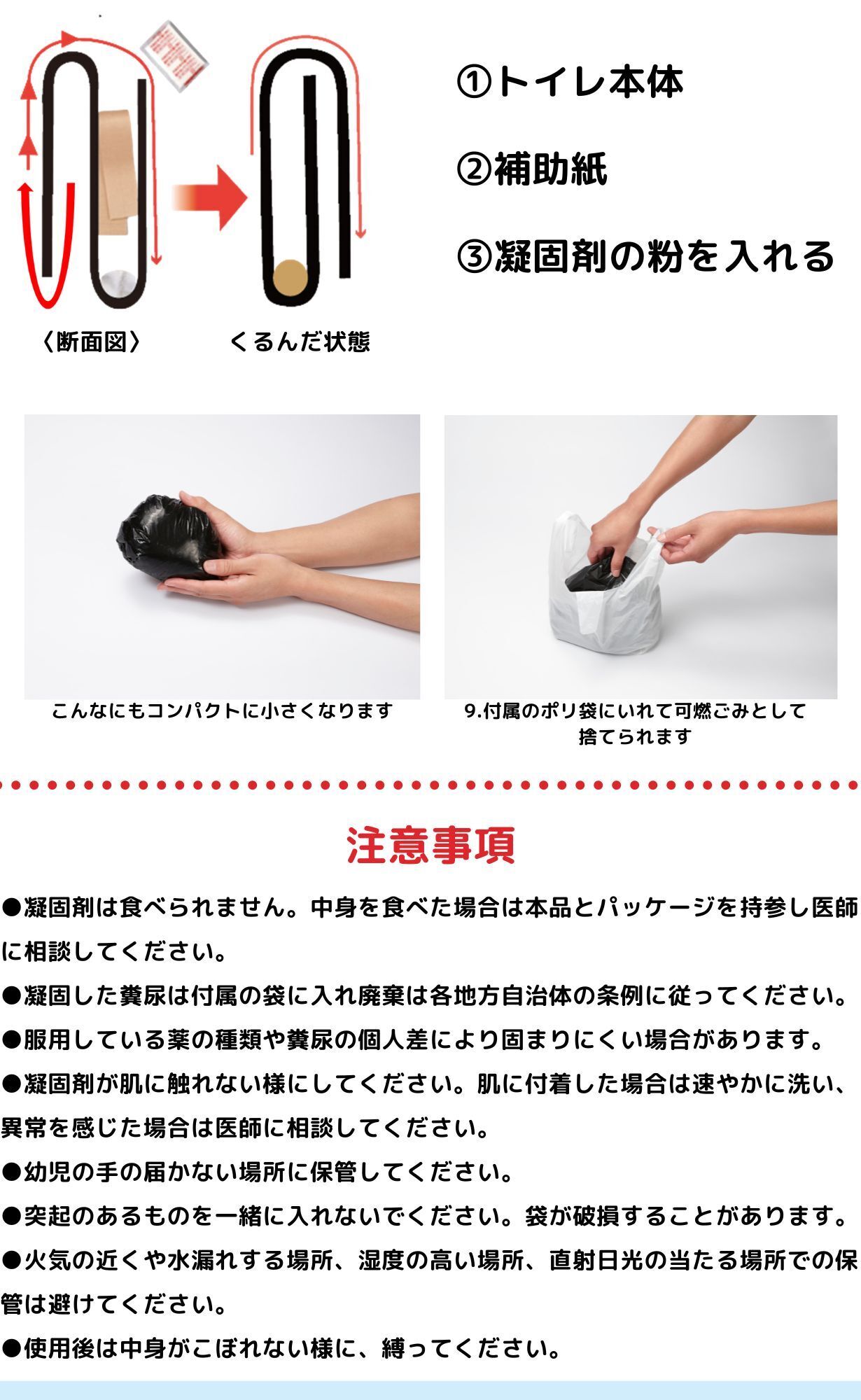その後、手提げ袋に入れ可燃込み廃棄が可能。