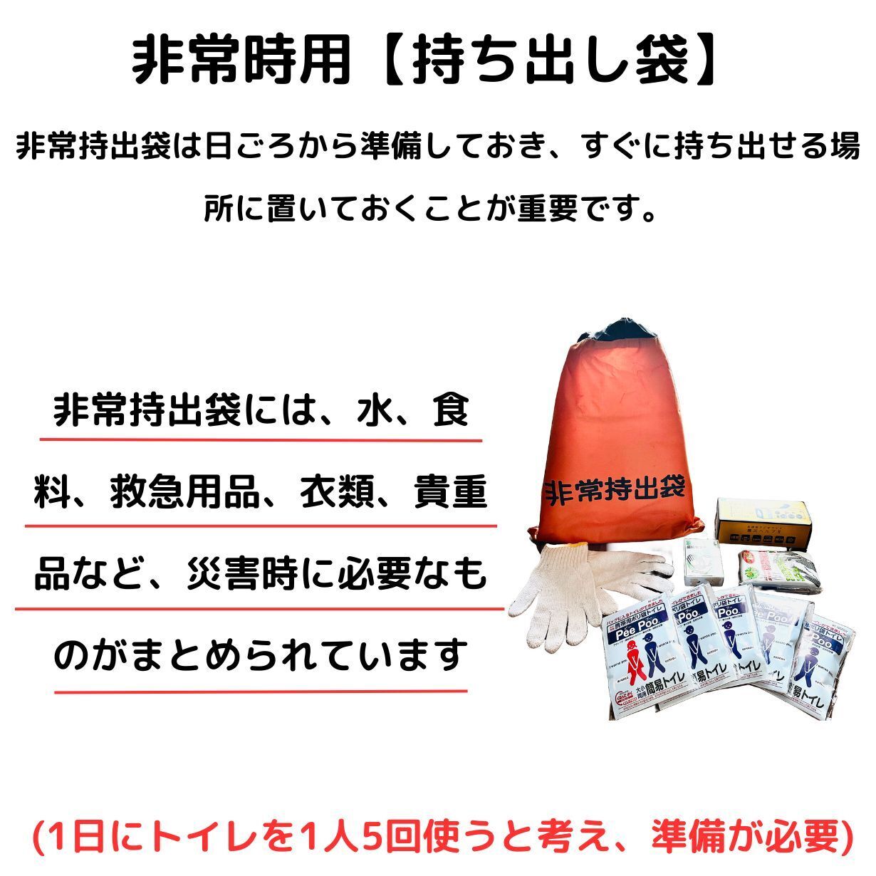 ◎災害時に備えて:1人、1日5回分✖3~4日=15個✖(人数分)