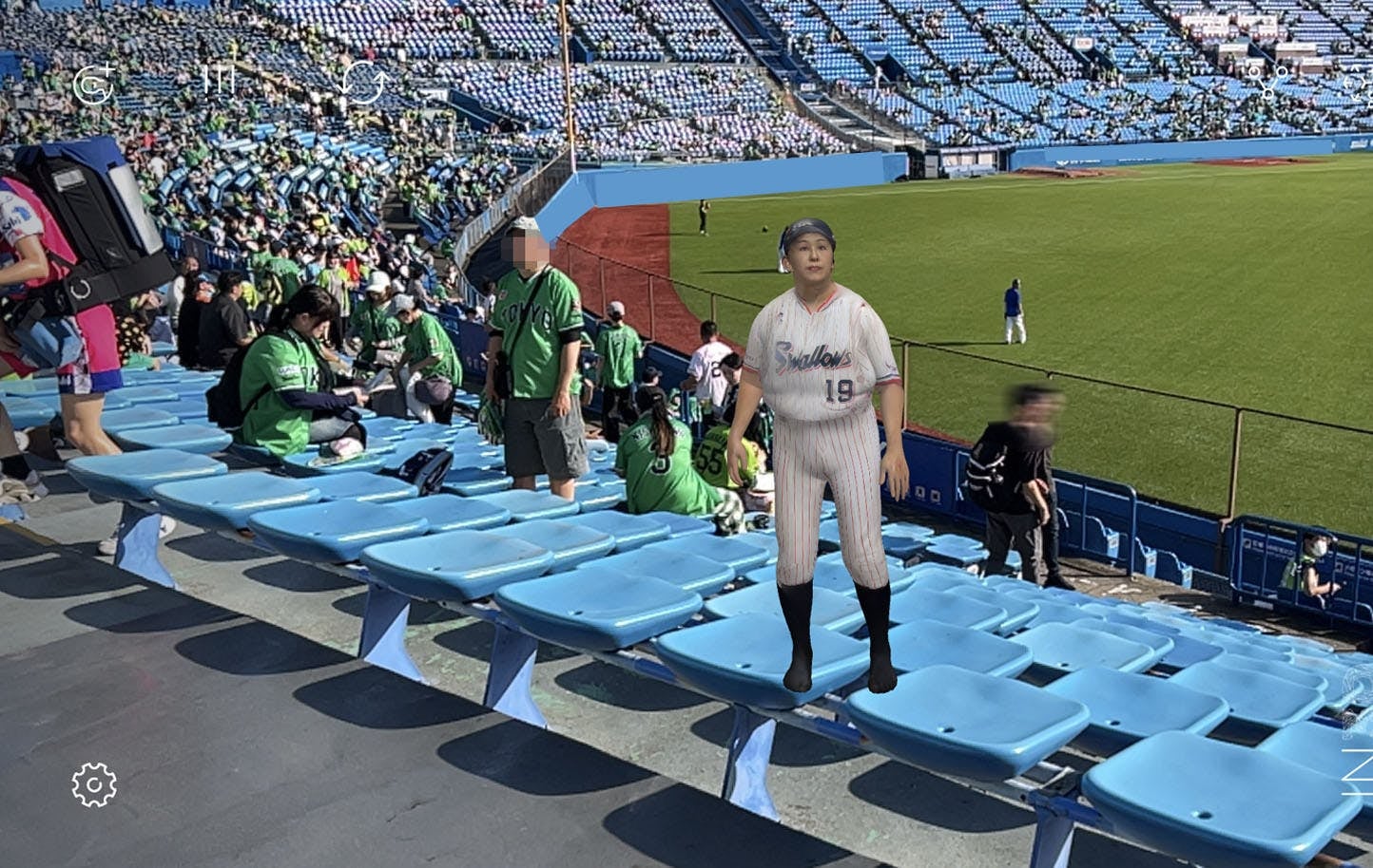 ①球場でARグラスもしくはMRゴーグルをかけてアバターを表示させます。