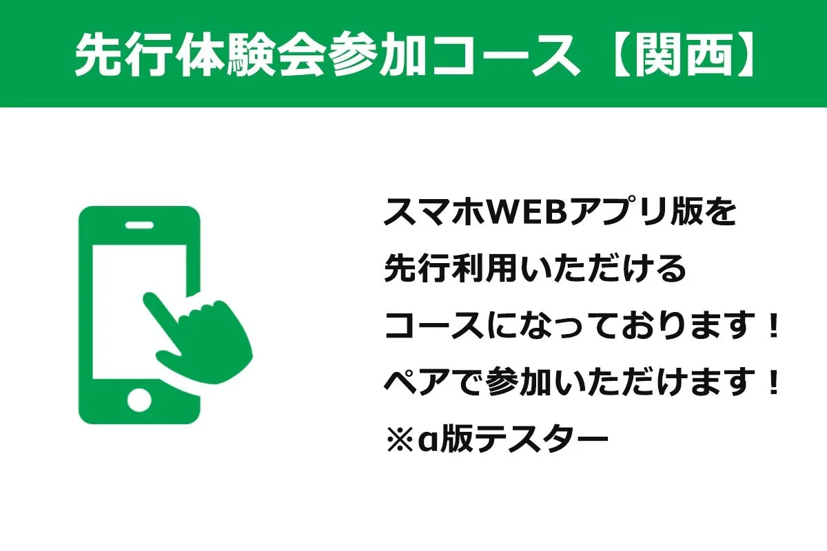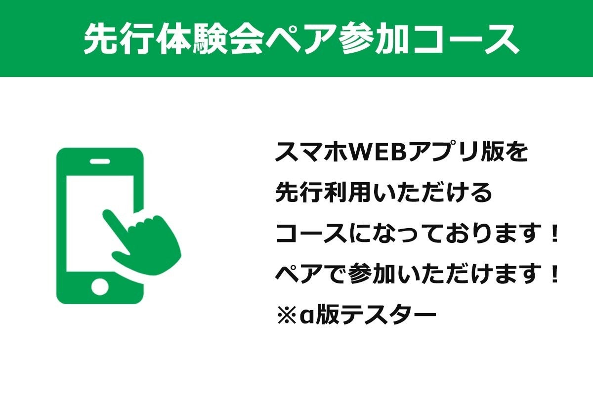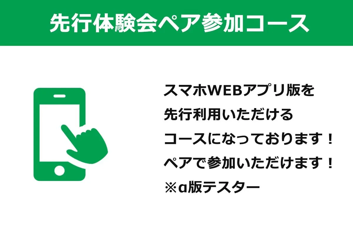 ◆スマホWEBアプリ α版 先行体験会ペア参加コース 5,000円/4名参加コース 10,000円