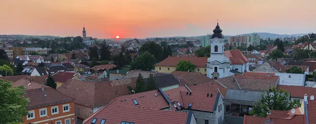 写真は、赤ワインが有名なエゲル地方の夕日です。街並みがとてもきれいでした。