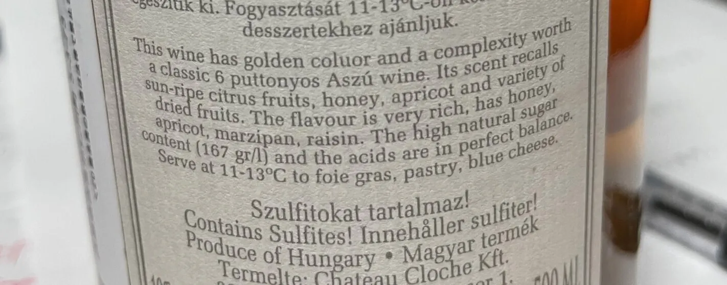 先にも記しましたが、糖分の追加(補糖)は禁じられていますので、aszuを名乗っているワインであれば必ず、蜜の香りと甘みを存分に味わえることになります。このような残糖度基準は、世界三大貴腐ワインの1つ、ドイツのトロッケンベーレンアウスレーゼにはありません。
