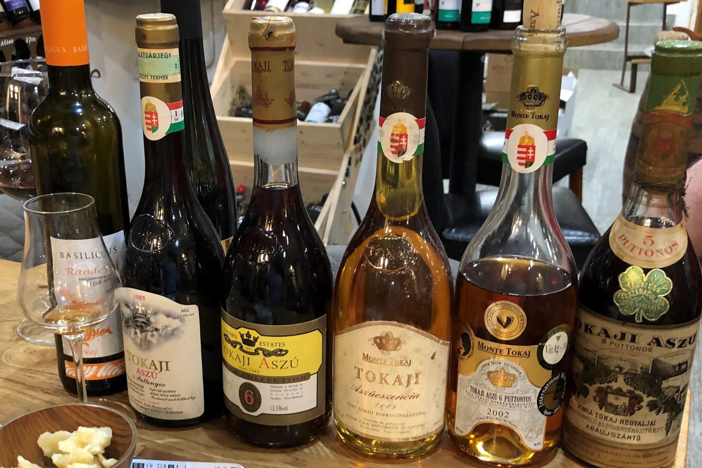 この写真はKissさんがブダペストで営むワインショップ・チャンビオインでの一コマです。Monte Tokajの6puttonys 2002も右から2本目にあります。