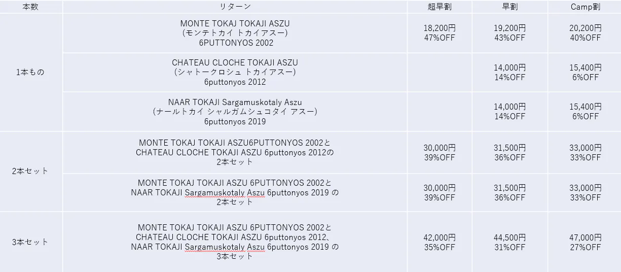 2024/11/16 10:39クリスマスを前に、甘口トカイワインなど6種の新規ワインのプロジェクトを始めました。クリスマス前にはお届けしますので、クリスマスにぴったりのハンガリーの甘口トカイワインなどをぜひご賞味ください。https://camp-fire.jp/projects/776439/view?list=watched超早割など、お得なセットも用意しております。 もっと見る間もなく終了です。ご支援いただいた皆さま、ありがとうございました。