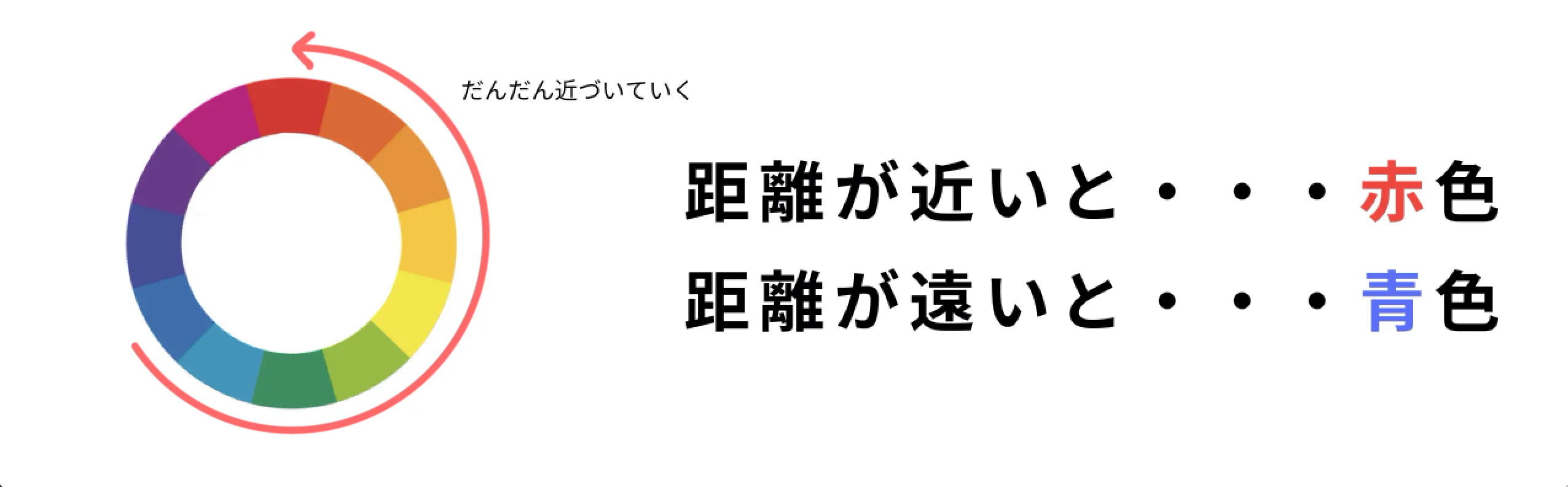 距離に応じて、お互いの半分ハートの中の色が光り変化していきます!