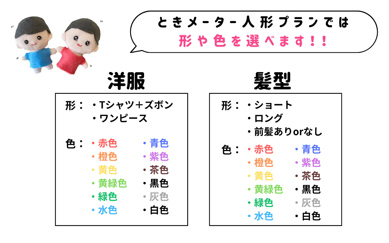 「ときメーター人形プラン」同様、髪や服の色・形が選べます。