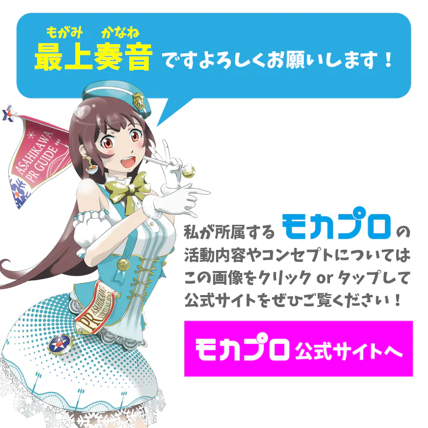 バーチャルマルチタレントの最上奏音(もがみかなね)です。モカとお呼びください!