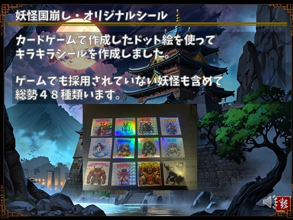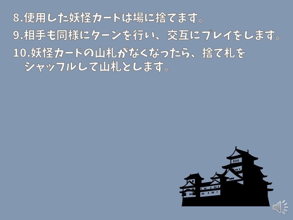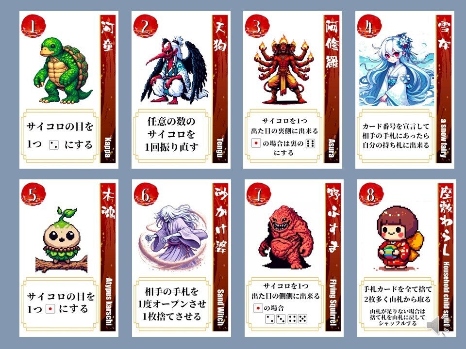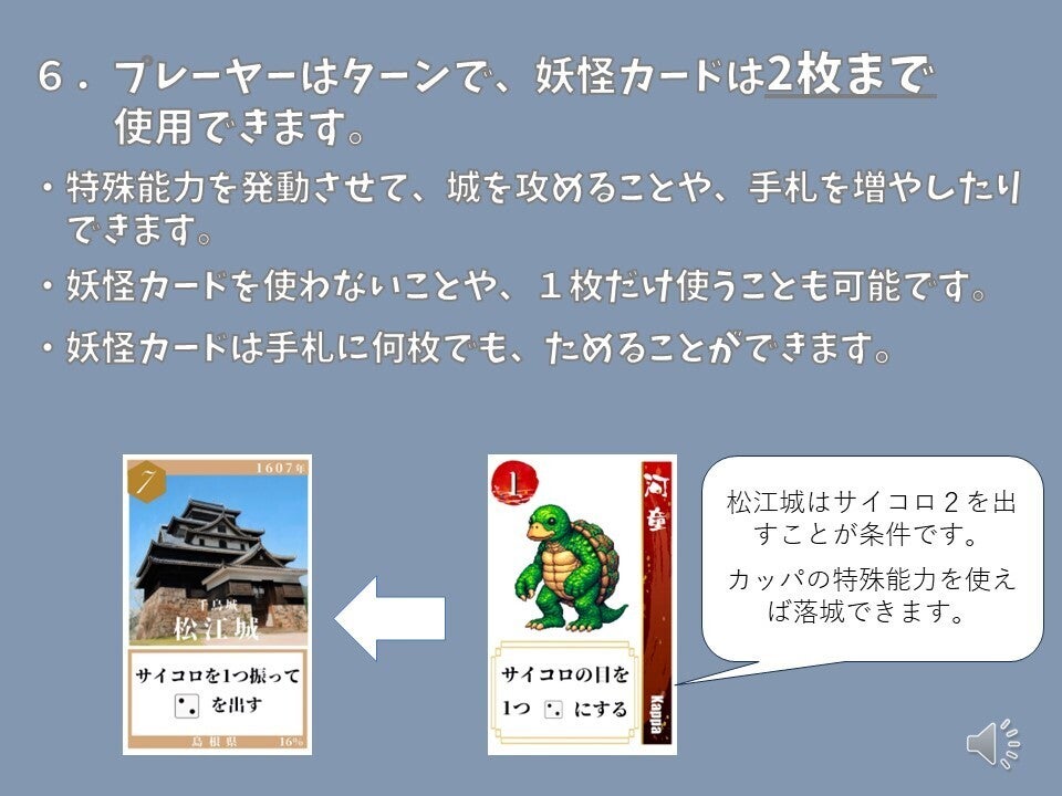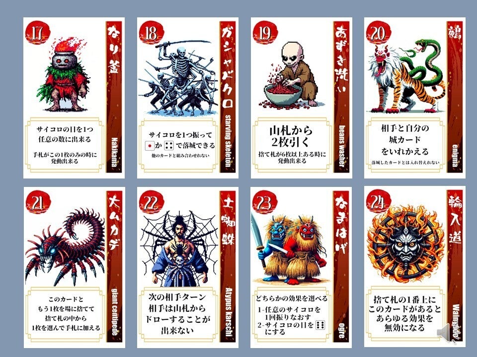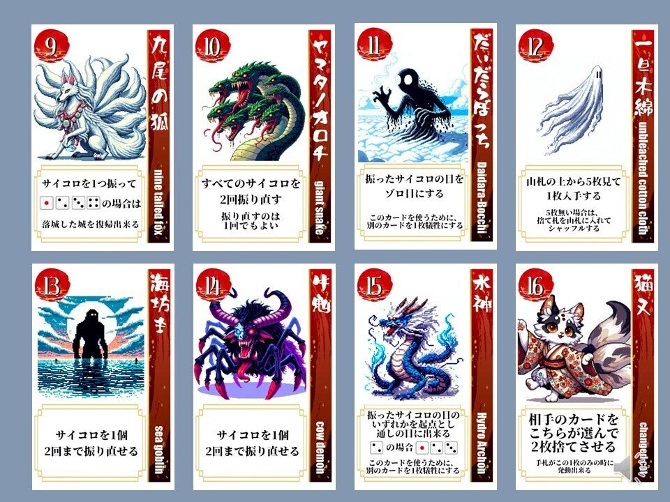 現存天守12城を、妖怪を使役して倒していくカードゲームです。