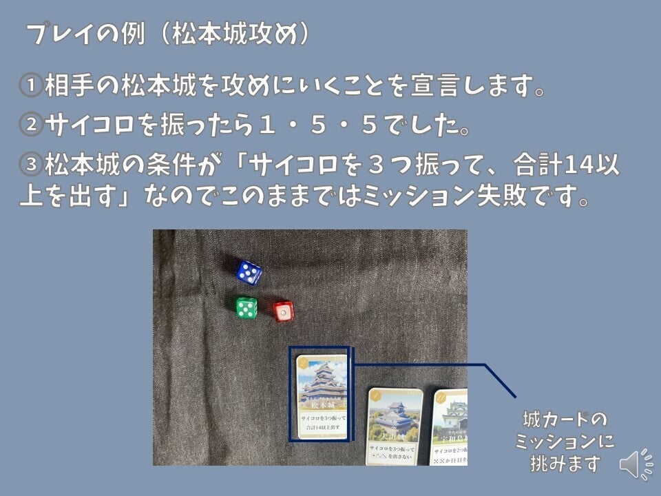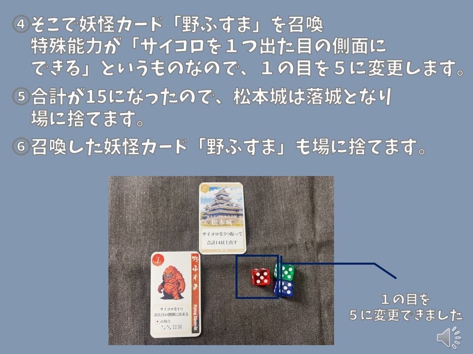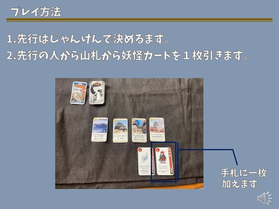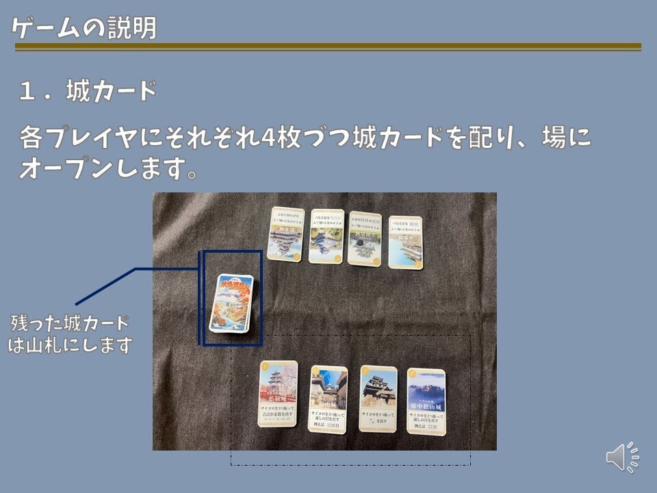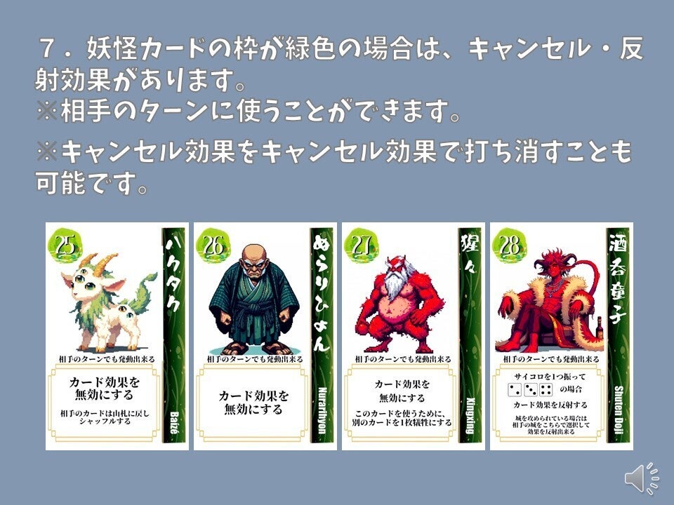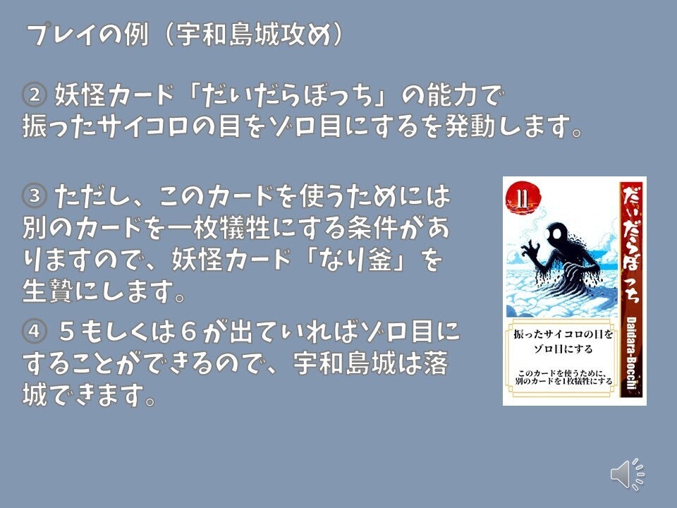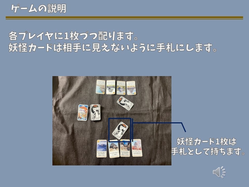 現存天守12城を、妖怪を使役して倒していくカードゲームです。