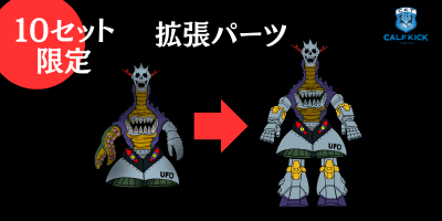 今回調達した資金を使って制作する新作ソフビ「ソクラテス」に脚が生えた完全体バージョンです。クラウドファンディング限定の赫怒の侵略者カラーとなり、生産個数は10個限定となります。両腕はマシーン型パーツ、タコ足型パーツ、ハサミ型パーツいずれかのランダムとなりますのでご注意下さい。