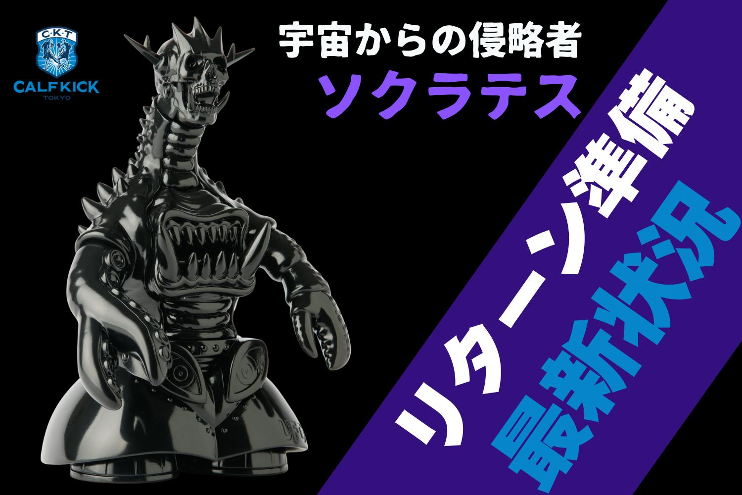 2025/07/01 07:26こちらでの進捗報告がずいぶん空いてしまいました。リターンをお待ちいただいている支援者の皆様、申し訳ありません。今日は、宇宙からの侵略者「ソクラテス」の最新の準備状況のご報告とリターン遅延の遅れについてご報告いたします。※なお、進捗状況は適宜カーフキック東京のInstagramとX(旧Twitter)で常に発信しています。リアルタイムで状況を知りたい方はこれらのアカウントをフォロー頂けますと幸甚です。彩色マスクの制作状況6月末くらいに完成できるか、と思っていた彩色マスクですが、残念ながらまだ完成していません。ご丁寧に彩色マスク制作を委託している会社からもご連絡をいただいており、完成は7月中旬頃になるとのことです。マスクの完成後にテスト彩色、問題なければ、1期カラーの生産という流れになります。6月頃を想定していた1期カラーの商品につきましても1〜2ヶ月程度の遅延が生じる見込みです。お待ち頂いている支援者の皆様、大変申し訳ありませんが、もうしばらくお待ちください。ヘッダー制作状況並行して作品のヘッダー制作を行なっています。今回、ヘッダーイラストをイラストレーターの方に依頼しました。昨日イラストが納品されましたので、ここからヘッダーデザインの最終段階となります。ヘッダーは7月中旬頃には完成する見込みです。そうなると、ソクラテスの素体をご支援頂いた方へのリターンはおそらく7月中には発送できると思います。こちらも6月頃というアナウンスではありましたが、もう少しお待ち頂けますと幸いです。封入台紙の制作今回、ヘッダーにご支援者様のお名前を掲載するという特典がリターンに含まれていましたが、ご支援者様が大変多いため、ヘッダーではなくソフビ本体と同封する台紙を準備することにしました!今回、台紙表面には沖縄を中心に活動されているクリエイターTANAさんにイラストを書き下ろして頂きました。私の大好きなクリエイターさんにご協力を頂くことができて大変嬉しく思います。今回は、リターン遅延のお詫びも兼ねまして、TANAさんに描き下ろして頂いたイラストを初公開させて頂きます。支援者の皆さんのお名前は、この台紙の裏面に列記させて頂きます。クリエイター様コラボ作品の制作状況今回、クリエイター様彩色の1 off作品、3 off作品をご準備いたしましたが、既にシカルナ工房様、NAITO COLOR様からは作品の納品を受けています。これらについても、ヘッダー、台紙の制作が完了次第、ご支援者様に発送させて頂く予定です。これらにつきましては、当初から8月頃とさせて頂いておりましたので、現時点では遅延の見込みはありません。まずはシカルナ工房様の作品続いてNAITO COLOR様の作品いずれもとてつもない格好良さの作品に仕上がっていますので、お楽しみに!遅延が発生しておりますが。。。諸々遅延が発生しており、支援者の皆様を不安にさせてしまっているかもしれませんが、鋭意準備中となりますので、もう少しお待ち頂けますようお願い申し上げます。たくさんの業者様、クリエイター様のご協力をいただき、とてもクオリティの高い作品が準備できています。これからも皆さまの期待に応えられるよう努力してまいりますので、温かい目で見守って頂けますと幸甚です。頑張ります。 もっと見る
