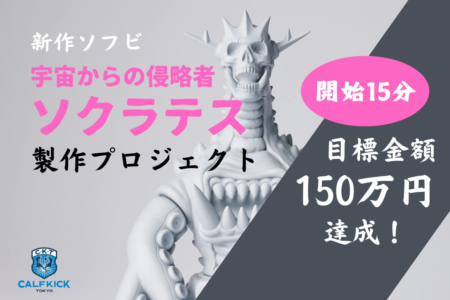 そこで、この結果を受けて、さらなる目標を設定させて頂くことにしました。次の目標はカーフキック東京として当初想像もしていなかった金額になります。私たちのアンダーグラウンド全開のソフビ製品がそんなにたくさんの方々に受け入れてもらえるのか不安は大きいですが、ここまで来たら、悔いの残らない大きな挑戦をしよう、と心に決めました。