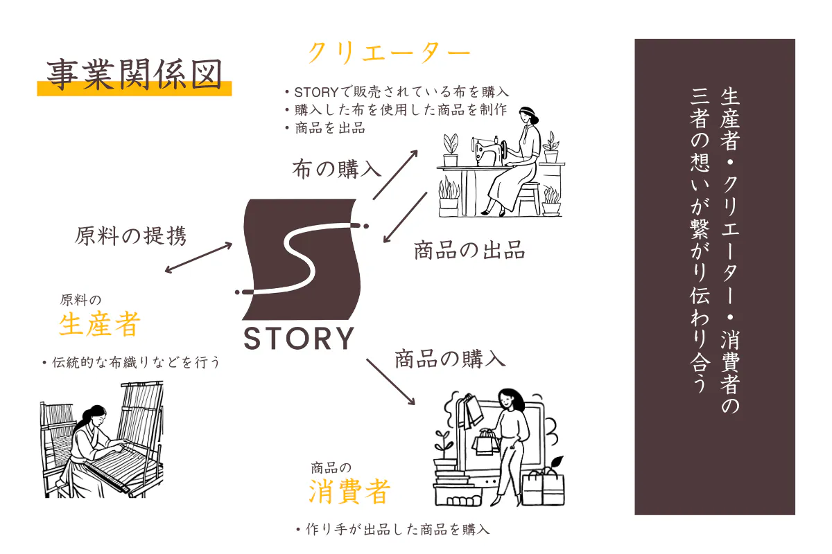 そして、STORYのプラットフォームで循環的な消費システムが行われることで、継続的な布購入が可能となり、