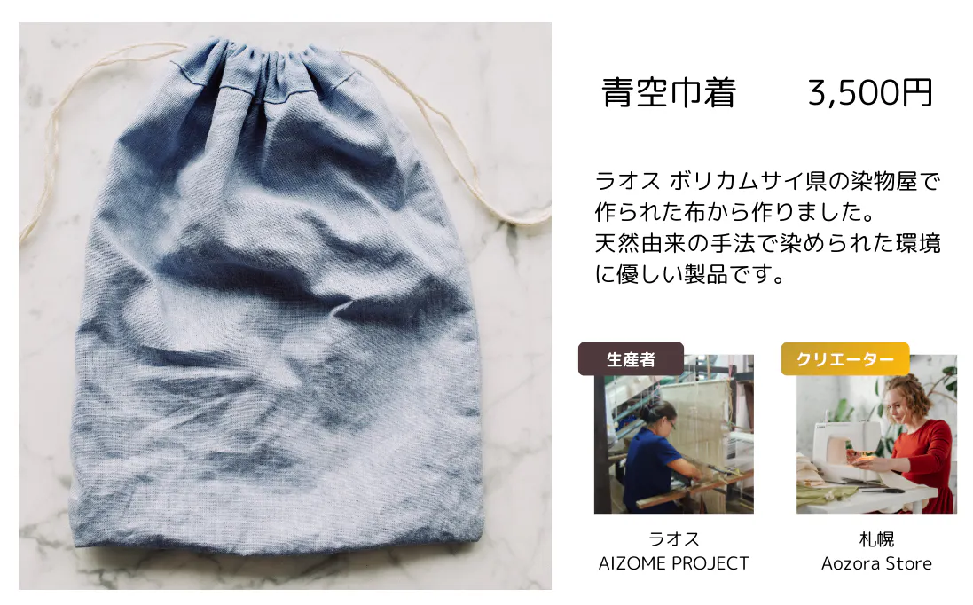 私たちは3年前、ラオスの布生産者さんへのご支援や日本でのラオスの布の普及活動につながるプロジェクトを実施しました。具体的には、ラオスの布を使用して日本のハンドメイド作家さんが商品を制作し出品するHANDICRAFT CONTESTです。さらにその作品を販売し、得た収益を布生産者の方へ還元しました。
