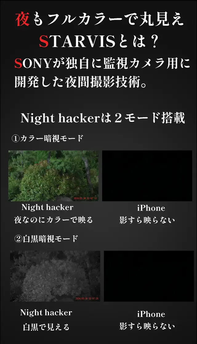 カラー暗視モード。SONYのSTARVISだから可能な特殊技術!