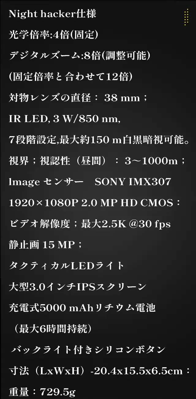 2025/03/25 20:23NWO JAPANです。ナイトハッカーを購入して頂きました皆様へ予定通り本日全ての商品の発送が完了致しましたのでご報告いたします。近日中に皆様のお手元にお届けできるかと存じますので、届くまで今しばらくお待ちくださいませ。ナイトハッカーに関しまして、ご質問等がございましたらお気軽にお問い合わせください。※商品が届きましたら、ご使用の前に必ず【取扱説明書】を読んで頂くよう宜しくお願い致します。この度は沢山の応援ありがとうございました。ナイトハッカーが皆様の生活のお役にたてれば幸いです。引き続きよろしくお願いいたします。NWO JAPAN もっと見る本日より発送がスタート致しました。