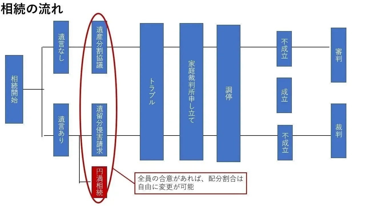 しかしながら、財産の相続割合は相続人間で自由に決定することが可能であるため、「遺産分割協議」を開いて相続割合を決定するという流れになります。