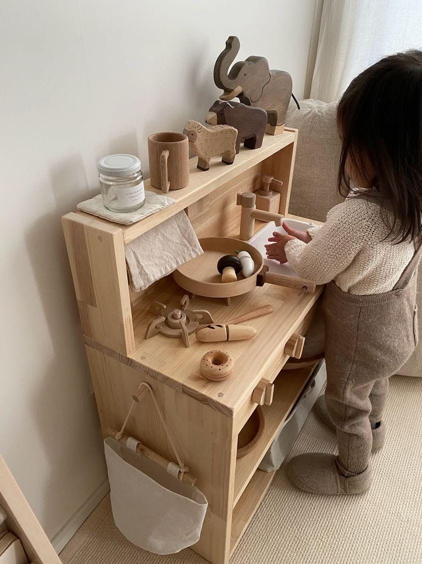 日本では安く、大量生産できるプラスチックのおもちゃがたくさんあり、こどもの目が引くようにカラフルにしたり、人気キャラクターとコラボした商品などが多く見られ、こどもの発達のことを考えて、おもちゃを開発するより、残念ながら売上につながるおもちゃを開発する企業が増えたように感じます。