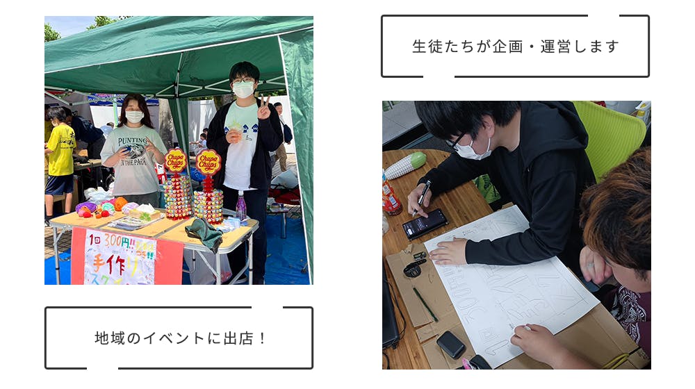 例えば夏祭りやハロウィーンなどの地域のイベントに積極的に参加し、来てくれる子ども達に対してどんな価値を提供できるか、自分たちで考え、準備して出店しています。いろいろ大変ですが失敗から学ぶことが次につながっています。大切にしているのは、生徒たちが自分で考えて動いていく環境をつくっていくことです。それに伴って地元が元気になってもらえればうれしいことです。