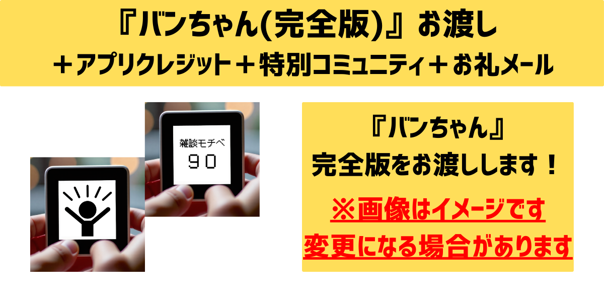 そこで、雑談苦手な方が楽しめるリターンとして、『バンちゃん(簡易版)』を追加開発します!