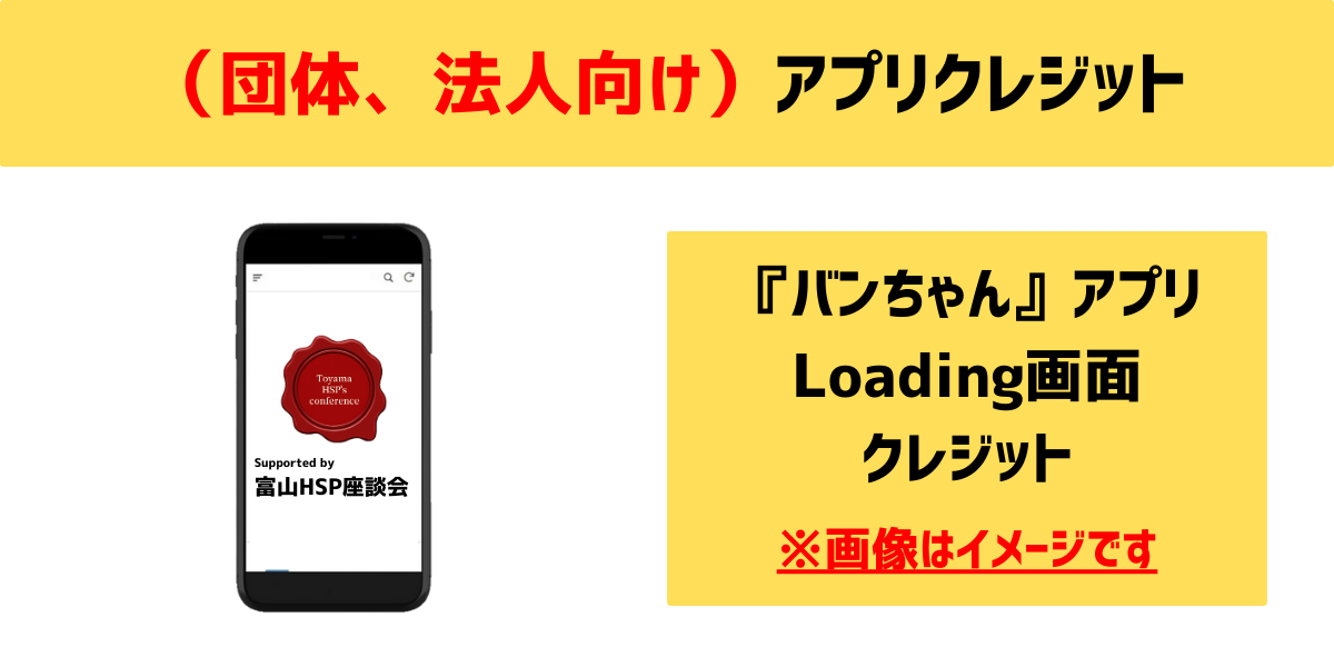 ・アプリ立ち上げ時に毎回表示されるローディング画面にご支援いただいた団体名や法人名とロゴを記載させていただきます。