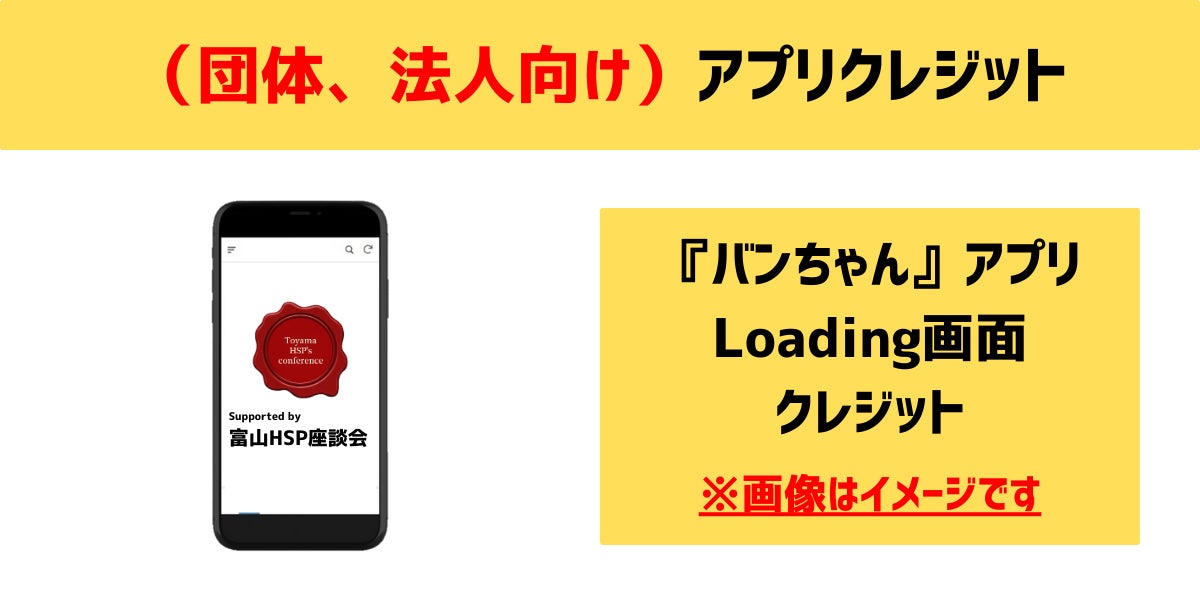 ・アプリ立ち上げ時に毎回表示されるローディング画面にご支援いただいた団体名や法人名とロゴを記載させていただきます。