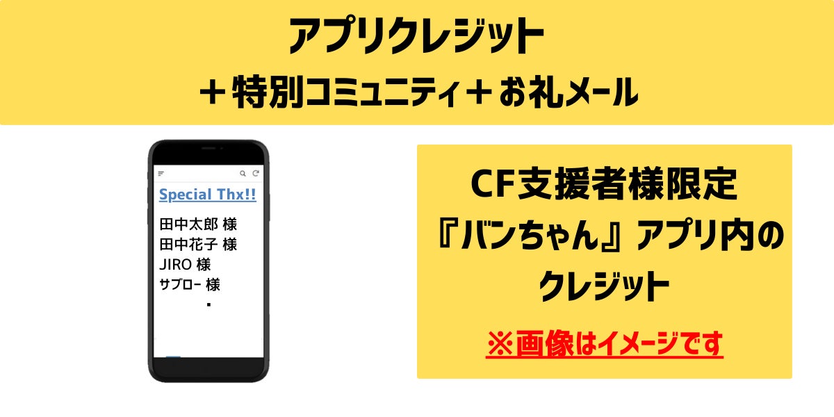 ・アプリ内にご支援いただいた方の名前(ニックネーム可)を記載させていただきます。(ご支援順)