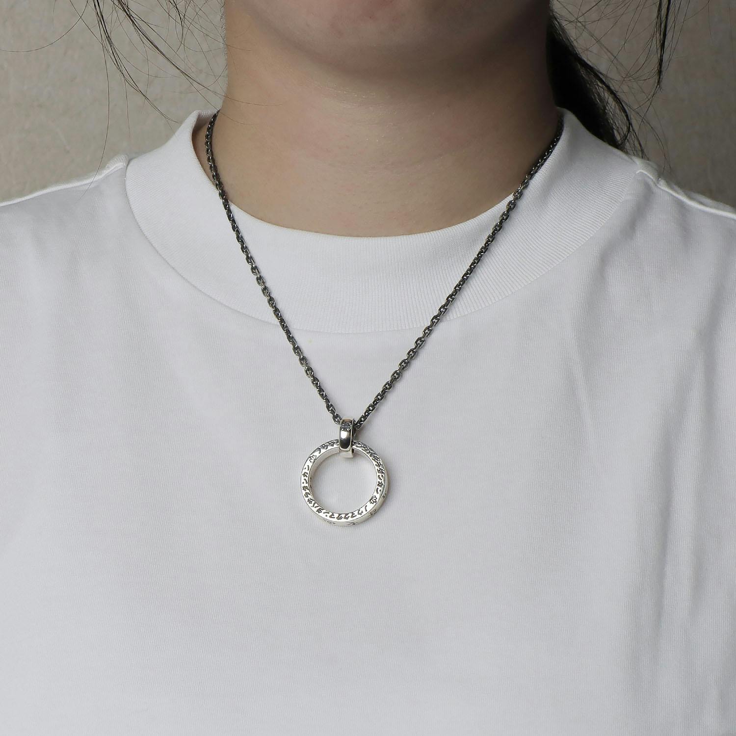 アクセサリーNGな職場でもネックレスなら服にも隠れやすく身に着けやすいのがメリットです。また、お手持ちの幅2.8㎜以内のチェーンであれば付け替えも楽しめます。