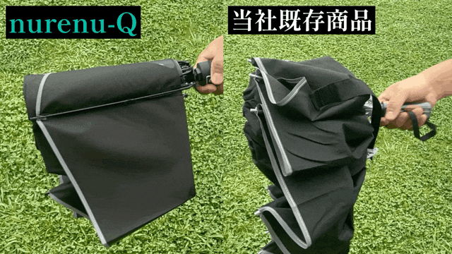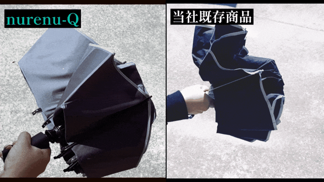 折りたたみ傘を綺麗に収納しようとすると数十秒近くかかりますが、nurenu-Qならこのとおり!