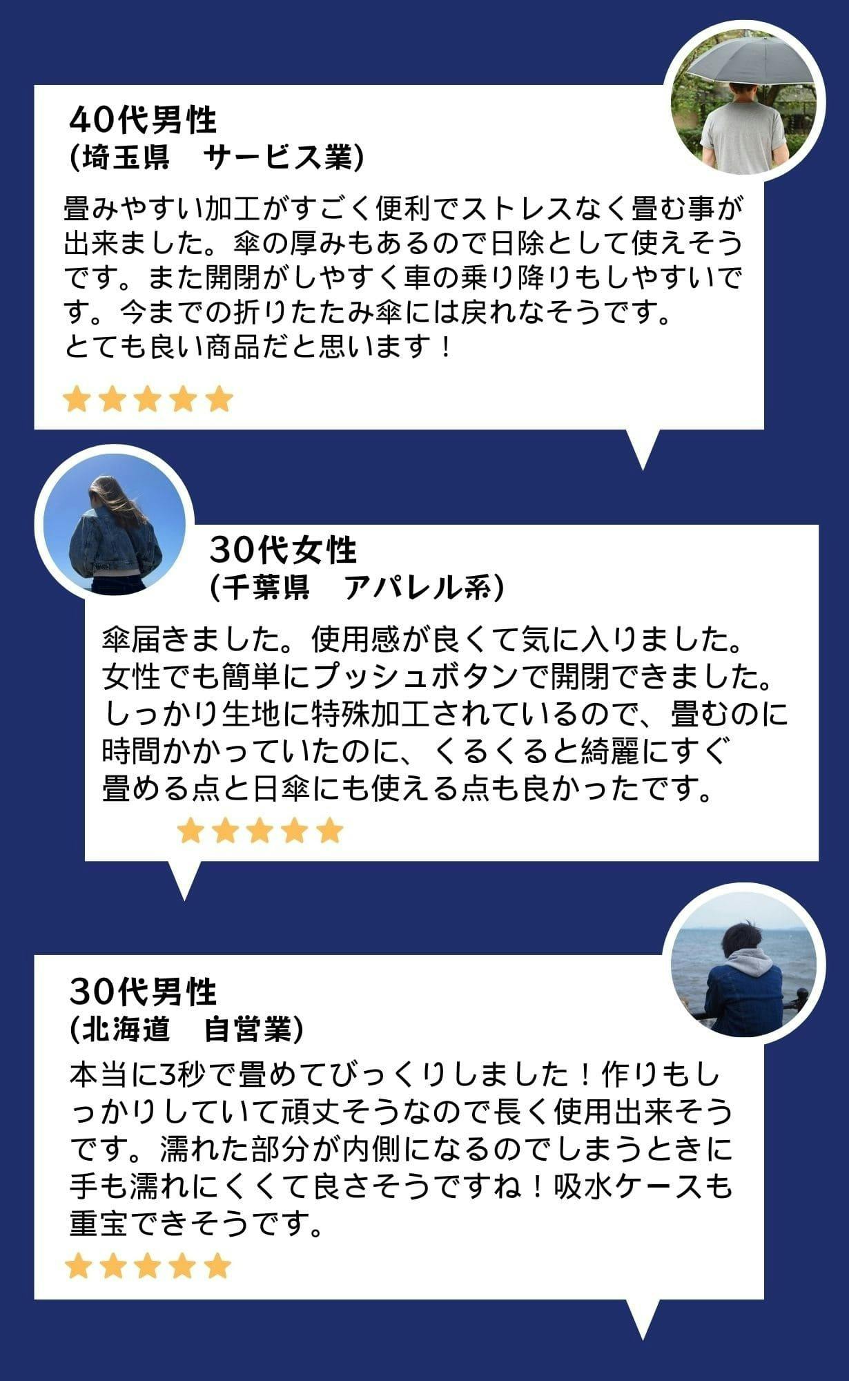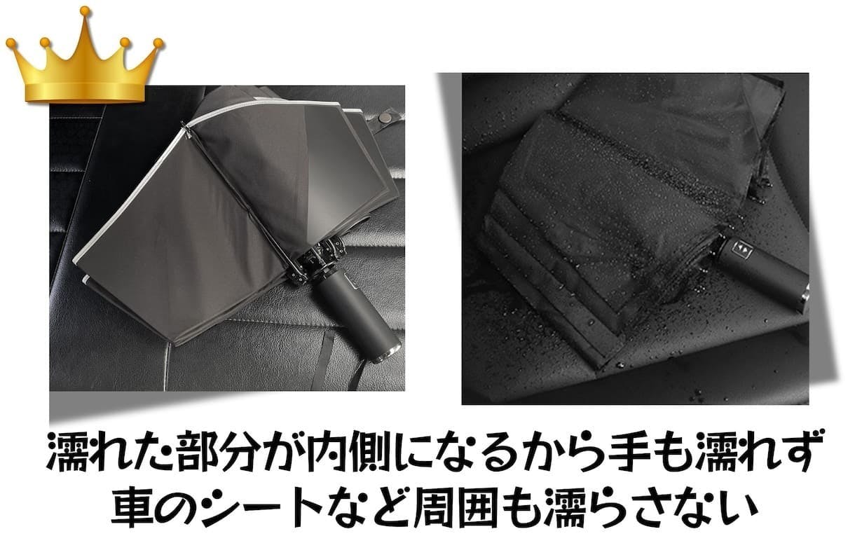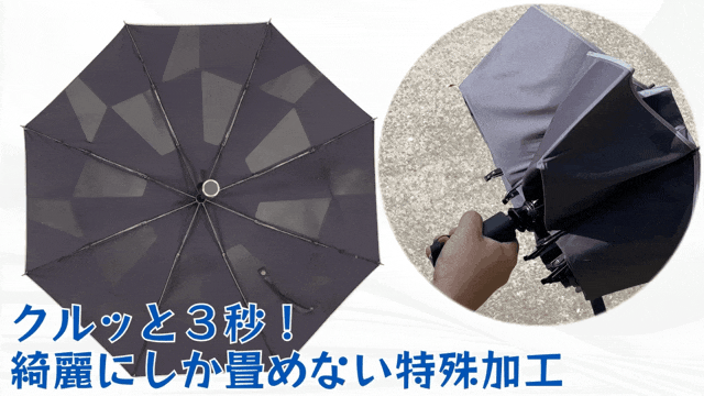 折りたたみ傘のデメリットとなる収納時の不便さや耐久性、開閉の面倒さなどを極限に0に近づけた究極の折りたたみ傘で、さらに濡れた部分が内側になる逆折り構造で撥水力UVカット性能などもMAXグレードで今までの折りたたみ傘の概念を超えた究極の傘です!