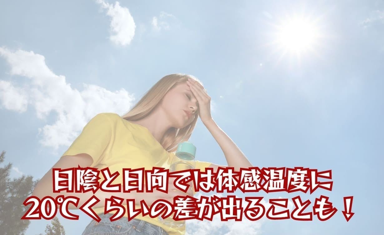日向と日陰では気温はほぼ変わらないものの路面温度などに差があり体感温度は炎天時には20度くらい違うこともあるそうです。
