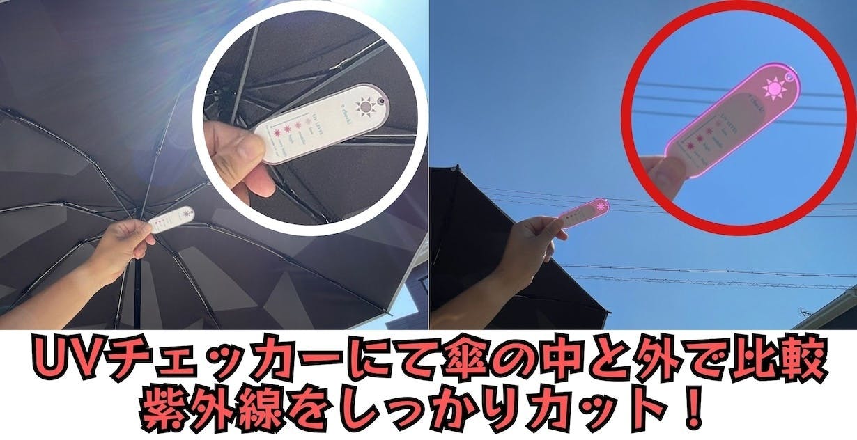 比較した傘は太陽の光が透けてしまうのに対してnurenu-Qは光も通さない!