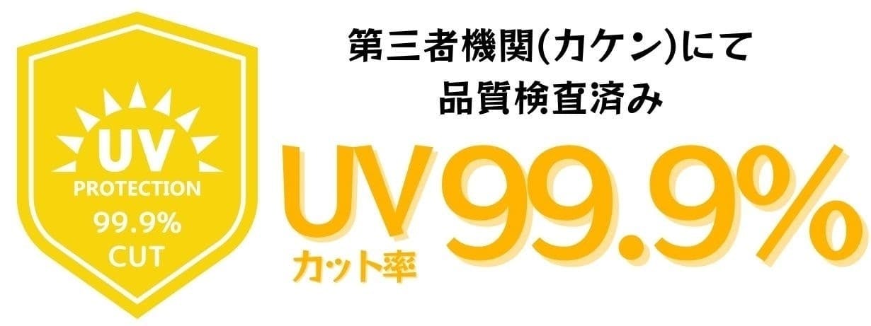 自社検査だけでなく日本の第三者機関である『一般財団法人カケンテストセンター』にて検査を行いMAXレベルのUVカット率99.9%という結果が出ました!