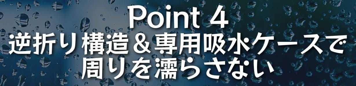 濡れた部分を内側に閉じ込めるから周りや収納時に手も濡れない!