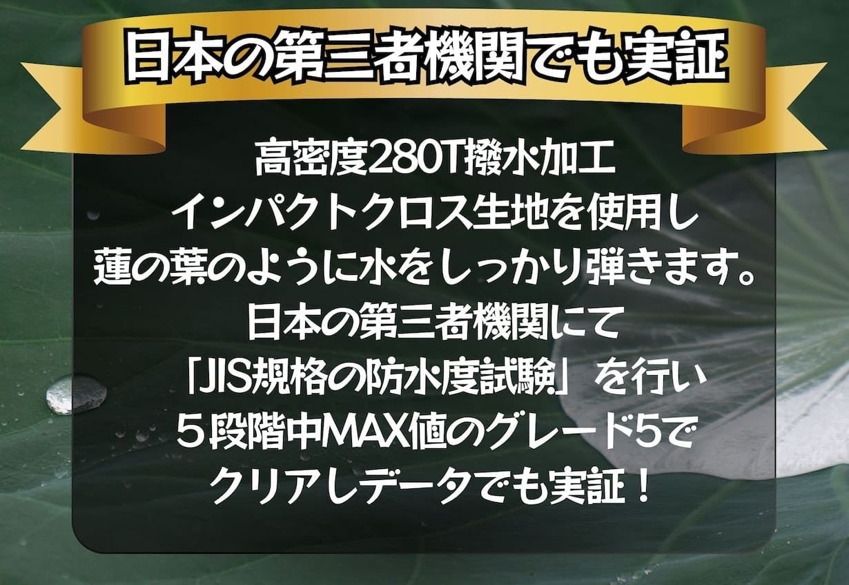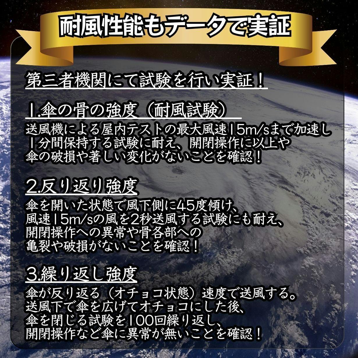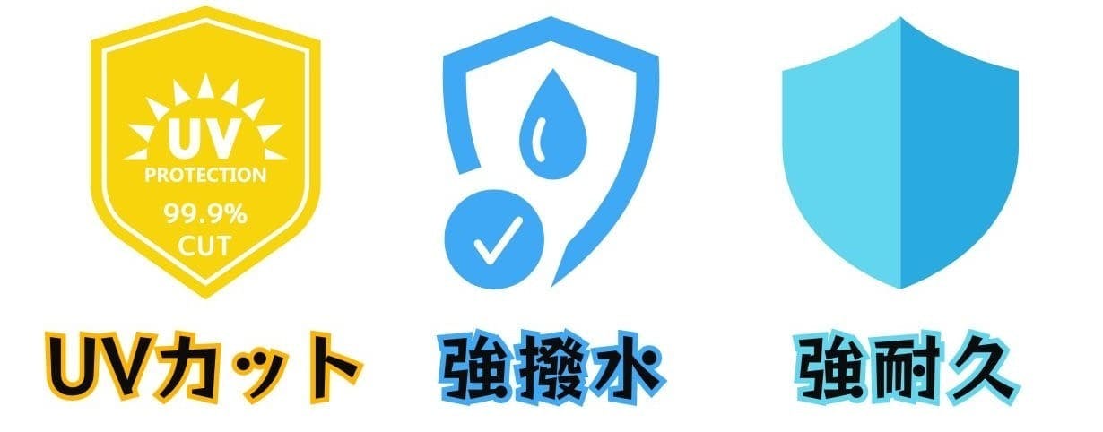 A : 傘の生地裏側の部分に薄いプラスチックのような樹脂をつけている状態のため、基本的には外れたりしない限り耐久性は続きます。