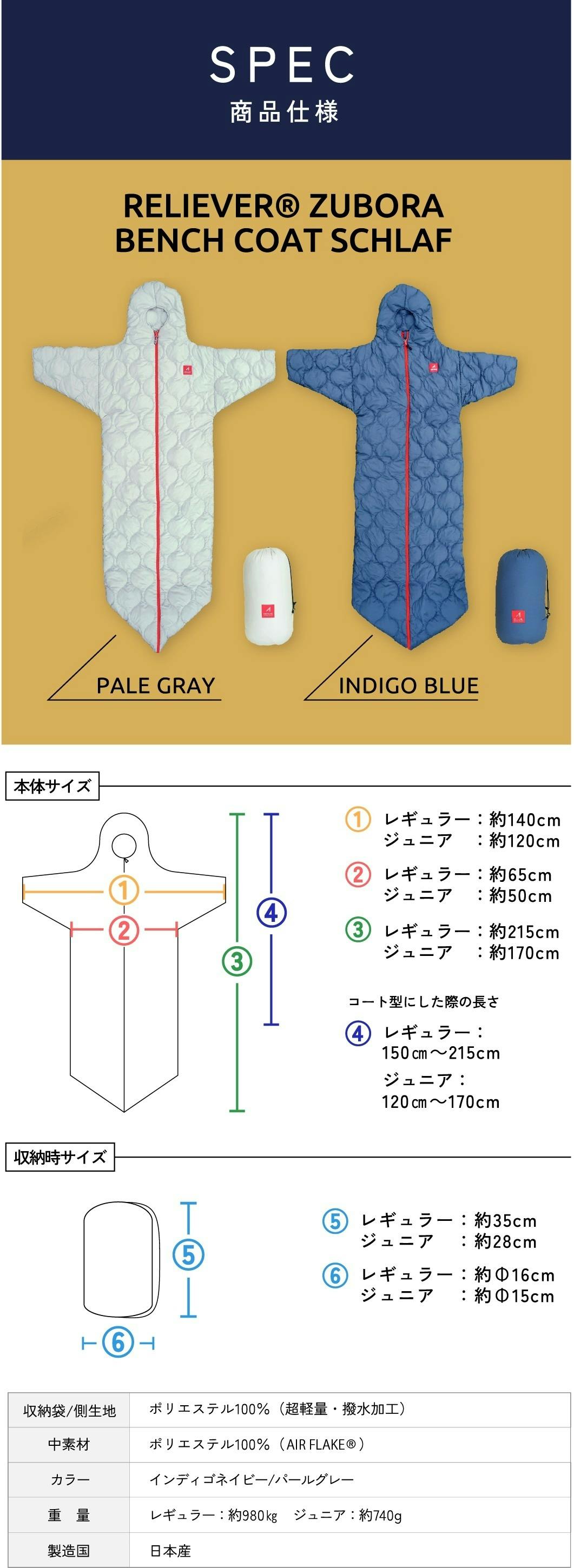 日々の生活でも、アウトドアでも、もしもの時にも役立つ寝袋『 RELIEVER® ZUBORA BENCH COAT SCHLAF 』を開発しました!