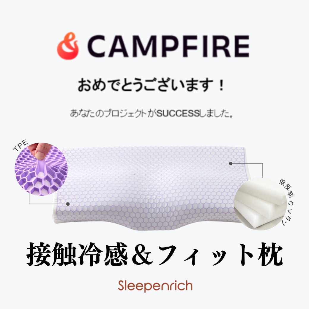 おはようございます。プロジェクト実行者のライフェンリッチです。本日から『接触冷感&フィット枕』のプロジェクトを開始させて頂きました。本商品は優れた熱伝導性による接触冷感を生み出す<TPE素材>を枕カバーに採用し、中材には立体形状でどんな寝姿勢にもフィットする<低反発ウレタン>を使用する事で、【‐11.6℃の接触冷感】×【抜群のフィット感】を実現し、寝苦しい夏の夜でも頭を冷やしてぐっすり眠りをサポートする枕です。続く熱帯夜で暑くて寝れない、、寝汗がべたつく、、、そんな方は是非『接触冷感&フィット枕』をお試しください!商品のお届けは“9月上旬” を予定しております。それではプロジェクト終了までよろしくお願い致します。