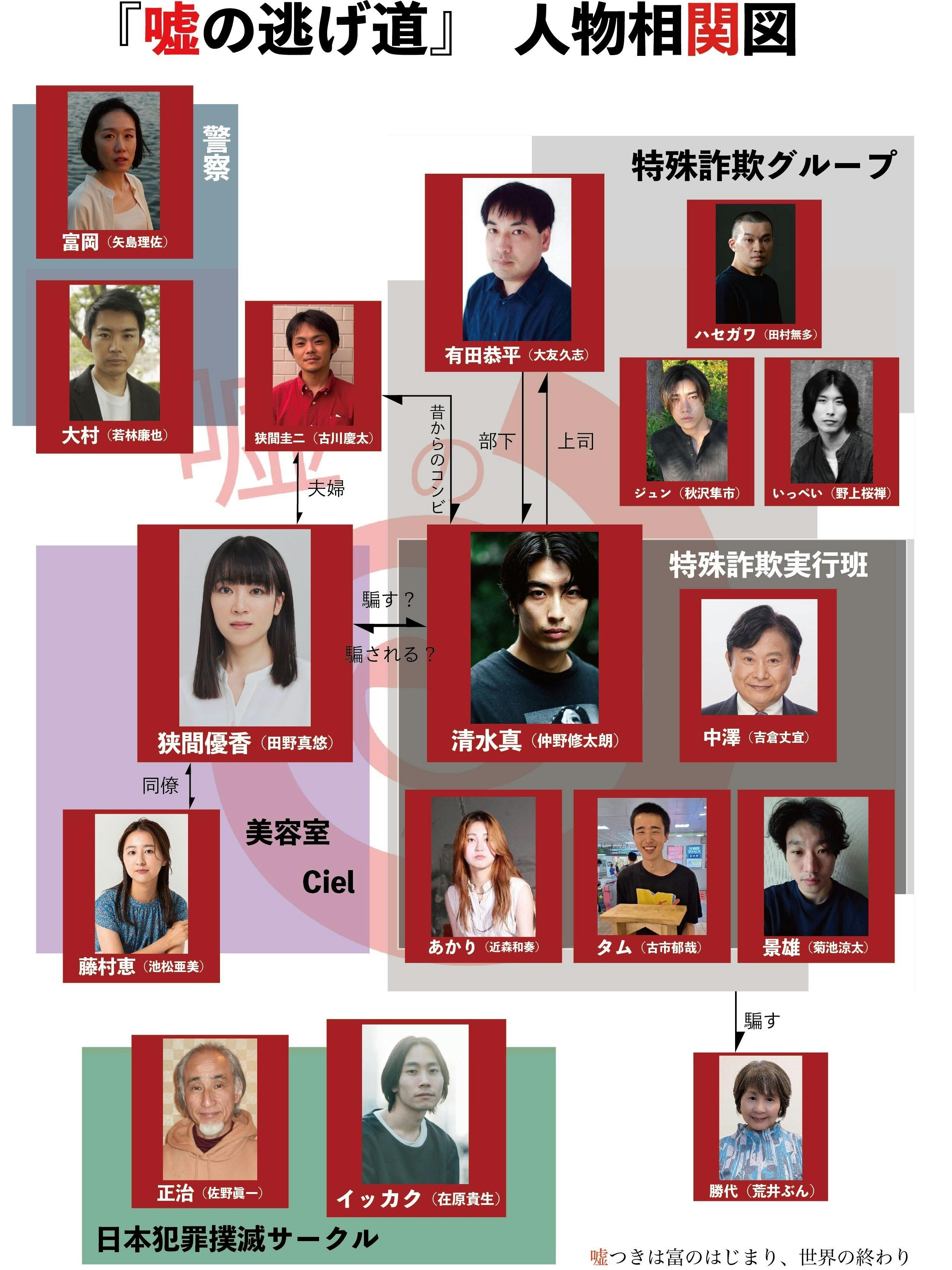 清水真(26)は特殊詐欺グループで狭間圭二(36)の指示の下、「飛び(※)」を行っている。それがグループのリーダーである有田恭平(39)にバレ、圭二は監禁され、真は圭二の妻である狭間優香(31)からお金を騙し取ることを指示される。