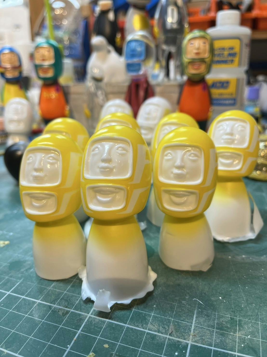 すべての工程は手作業で行っており、顔の表情やカラーの濃淡など、細かな部分も丁寧に仕上げています。現在の工房は、まさにダブルライダーたちでにぎわっています。